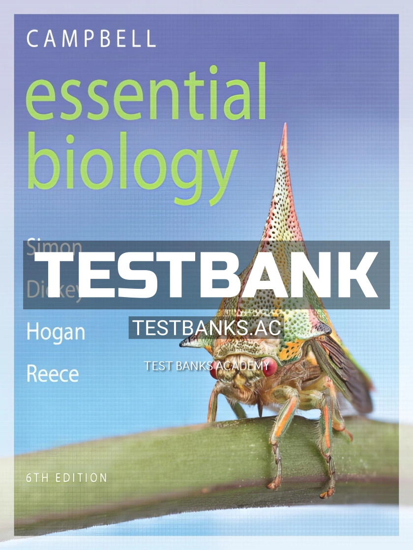 Complete test bank for campbell essential biology, 6th edition by simon, dickey, reece, hogan (pearson 2016 9780133917789-isbn) All chapters are included.