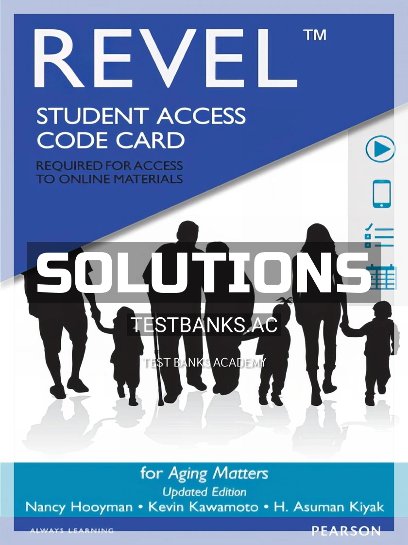 Complete solutions manual for aging matters, 1st edition by hooyman, kawamoto, kiyak (pearson 2016 9780133973921-isbn) All chapters are included.