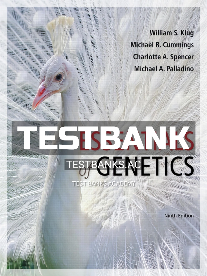 Test Bank for Essentials of Genetics 9th Edition by Klug.