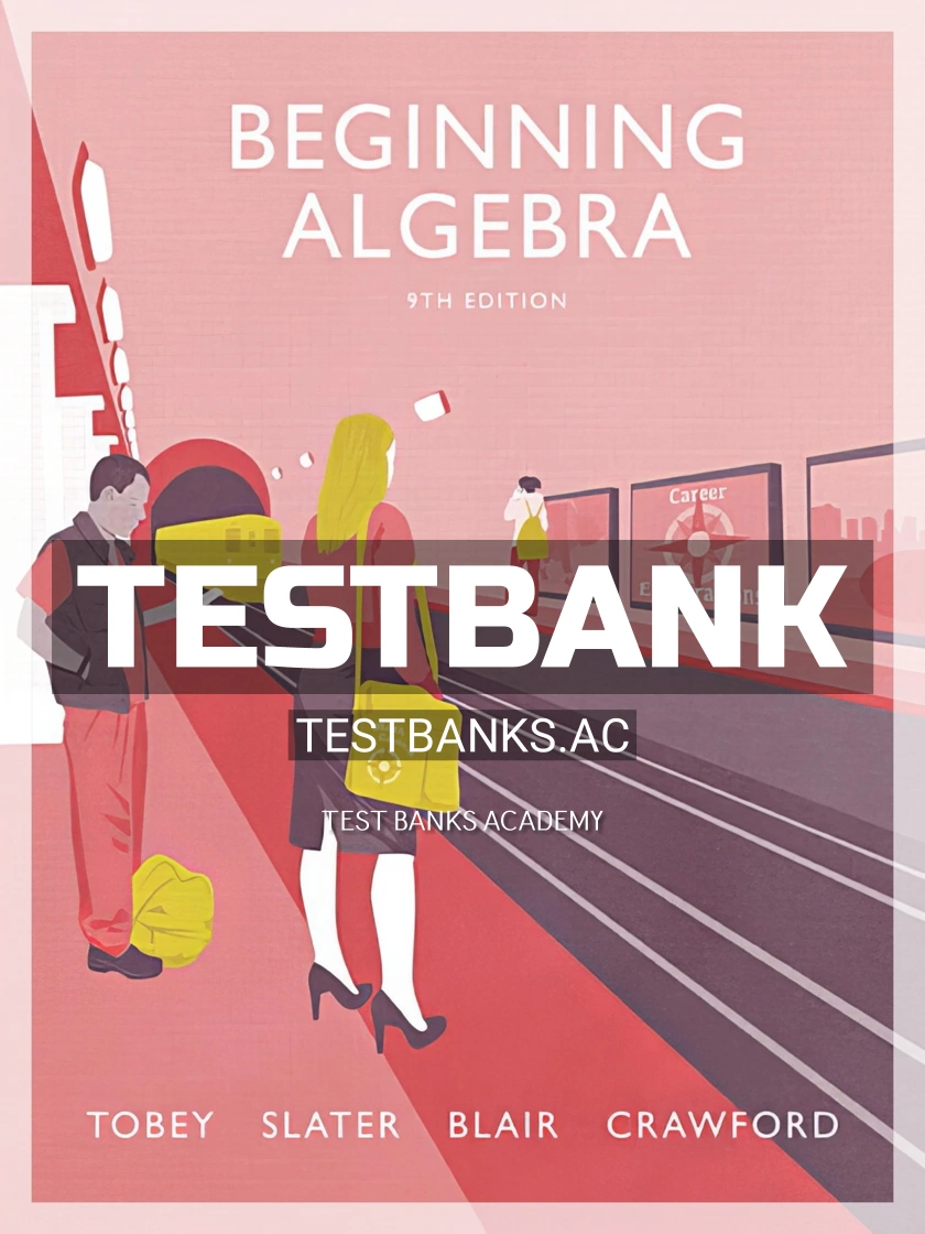 Complete test bank for beginning algebra, 9th edition by tobey, slater, blair, crawford (pearson 2017 9780134187792-isbn) All chapters are included.