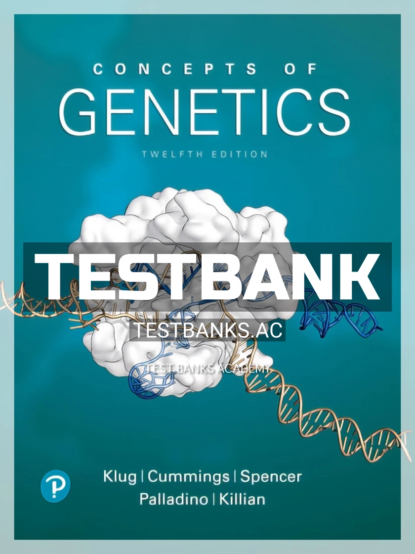 Complete test bank for concepts of genetics, 12th edition by klug,cummings,spencer (pearson 2019 9780134604718-isbn) All chapters are included.