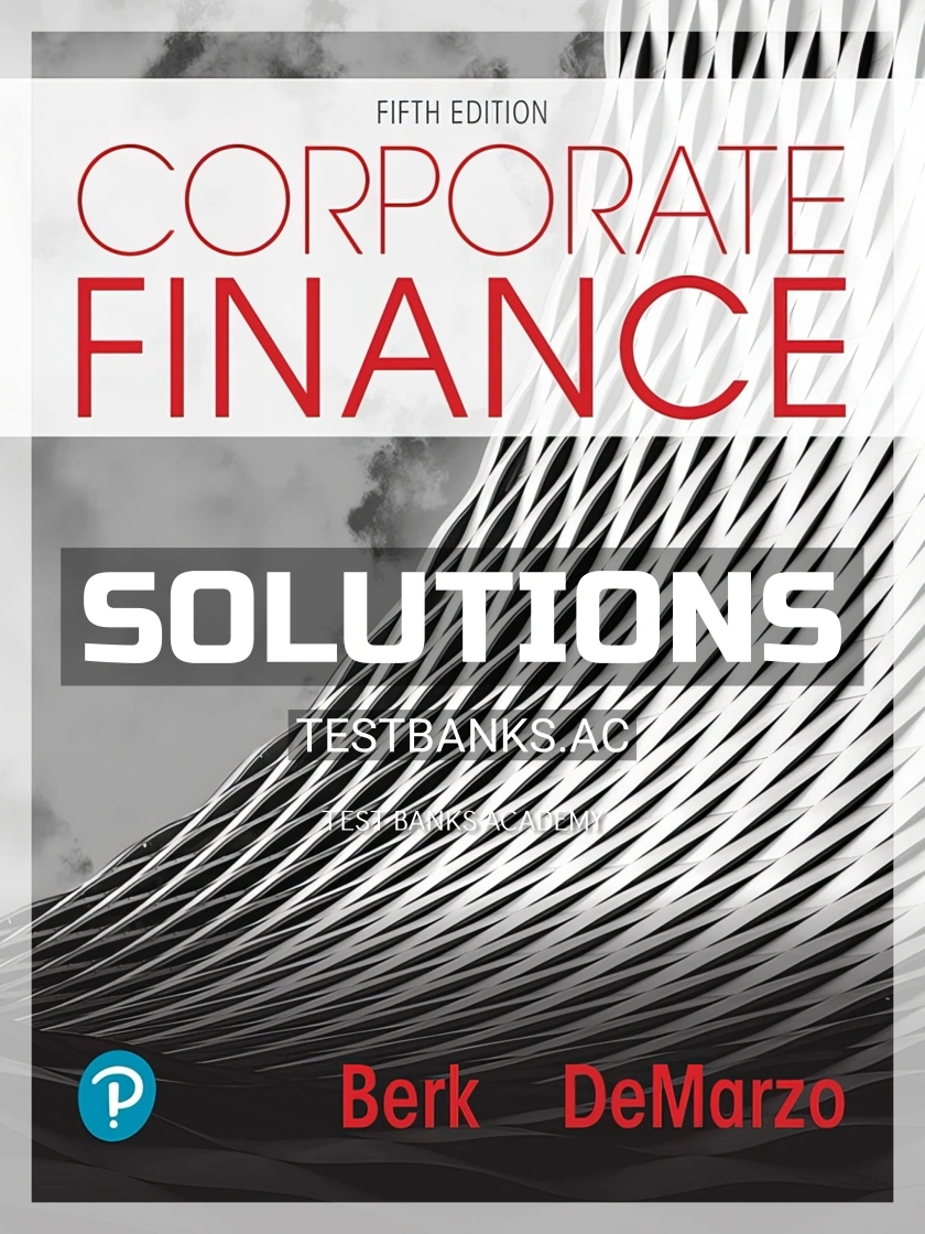 Complete solutions manual for corporate finance, 5th edition by berk, demarzo (pearson 2020 9780135161081-isbn) All chapters are included.