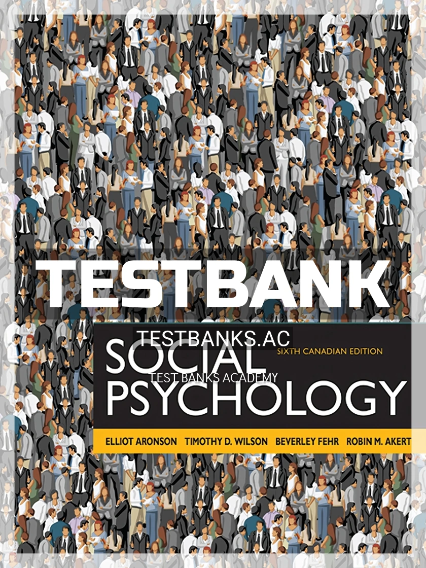 Complete test bank for social psychology, 6th ca edition by aronson,wilson,fehr,akert (pearson 2017 9780205970032-isbn) All chapters are included.