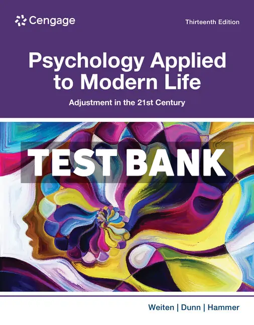 Elevate your academic journey with the “Psychology Applied to Modern Life 13th Edition Weiten Test Bank”. Designed for both students and educators, this comprehensive test bank offers an extensive collection of exam questions crafted to mirror the challenges of modern psychology courses.