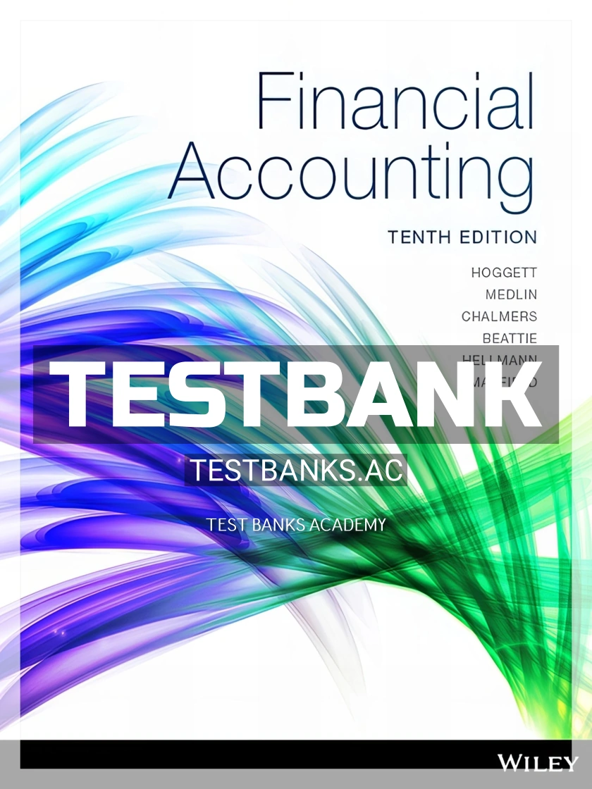 Complete test bank for financial accounting, 10th edition by hoggett, medlin, chalmers, beattie, hellmann, maxfield (john wiley & sons 2019 9780730362968-isbn) All chapters are included.