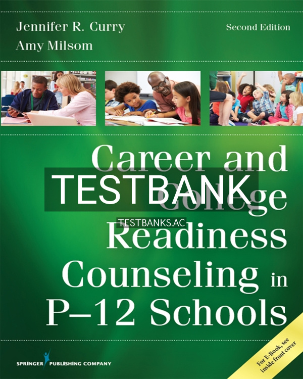 Complete test bank for career and college readiness counseling in p-12 schools, 2nd us edition by jennifer r. Curry, phd, amy milsom, ded, lpc-s, ncc (springer pub 2017 9780826136145-isbn) all chapters included