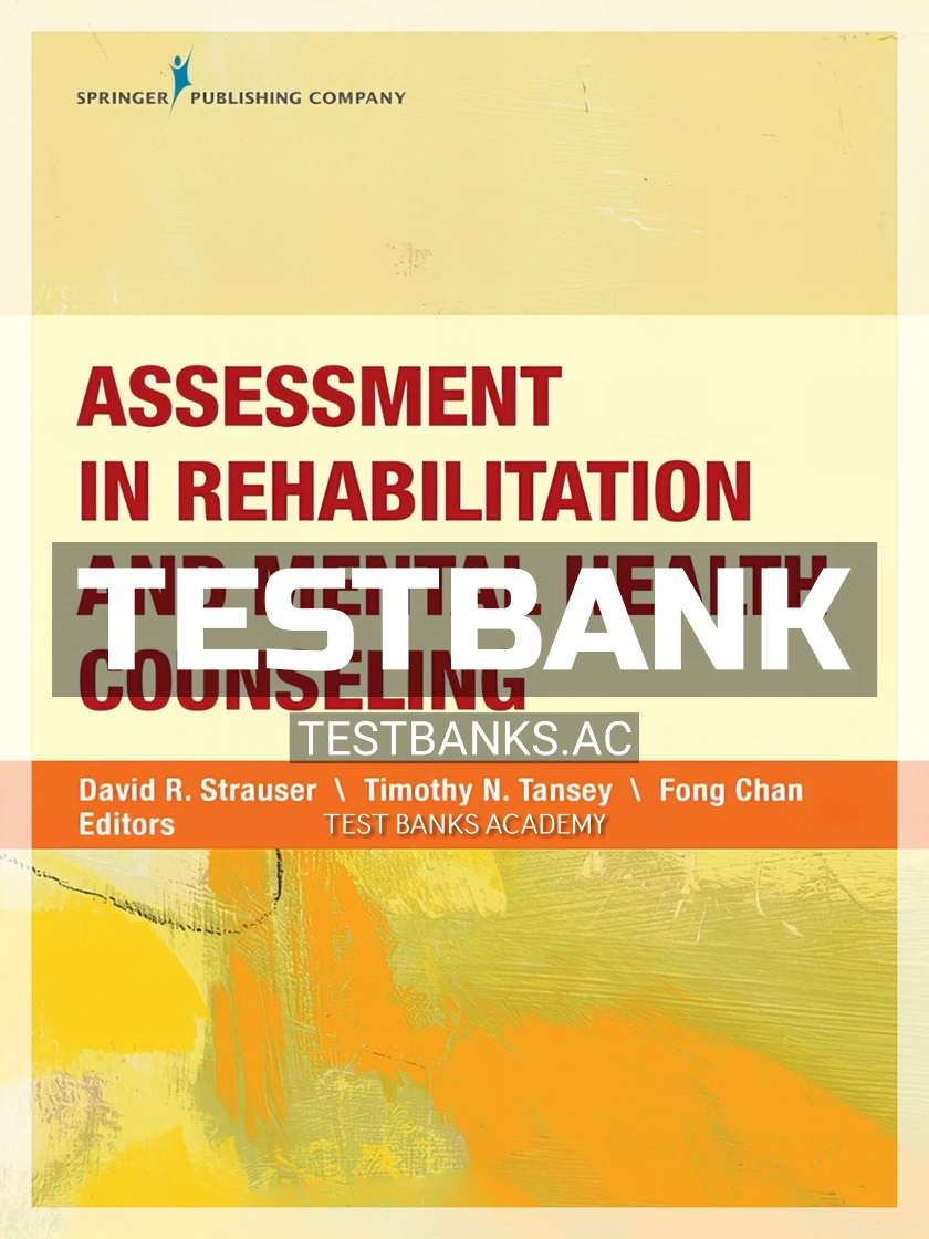 Complete test bank for assessment in rehabilitation and mental health counseling, 1st edition by strauser, tansey (springer pub 2020 9780826162434-isbn) All chapters are included.