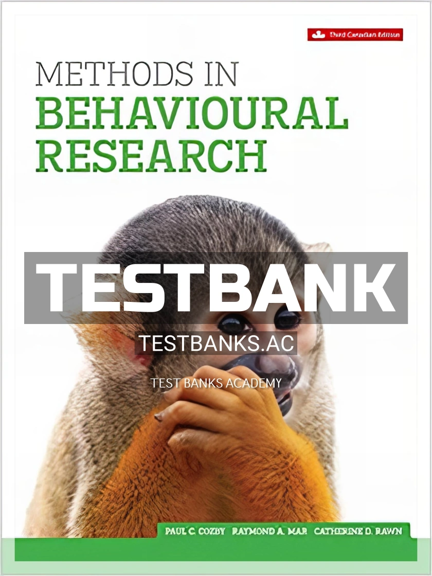 Test Bank for Methods In Behavioural Research 3rd CA Edition by Cozby.