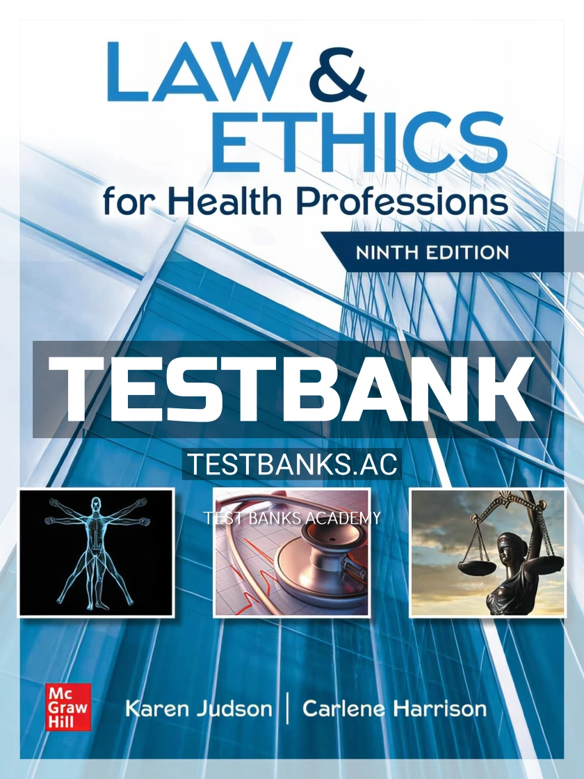 Complete test bank for law and ethics for health professions, 9th edition by judson, harrison (mcgraw-hill 2021 9781260021943-isbn) All chapters are included.