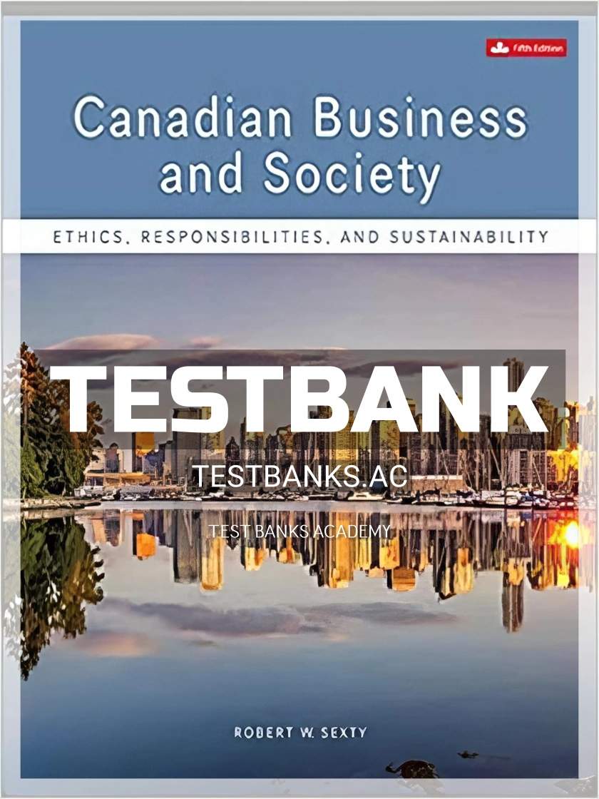 Complete test bank for canadian business & society ethics responsibilities and sustainability, 5th ca edition by sexty (mcgraw-hill 2020 9781260065916-isbn) All chapters are included.