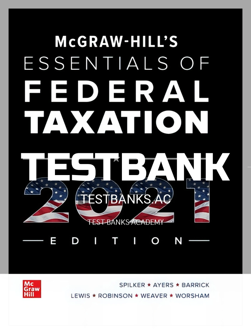 Complete test bank for mcgraw hills essentials of federal taxation 2021 edition, 12th edition by spilker, ayers, barrick, lewis, robinson, weaver, worsham (mcgraw-hill 2021 9781260432909-isbn) All chapters are included.