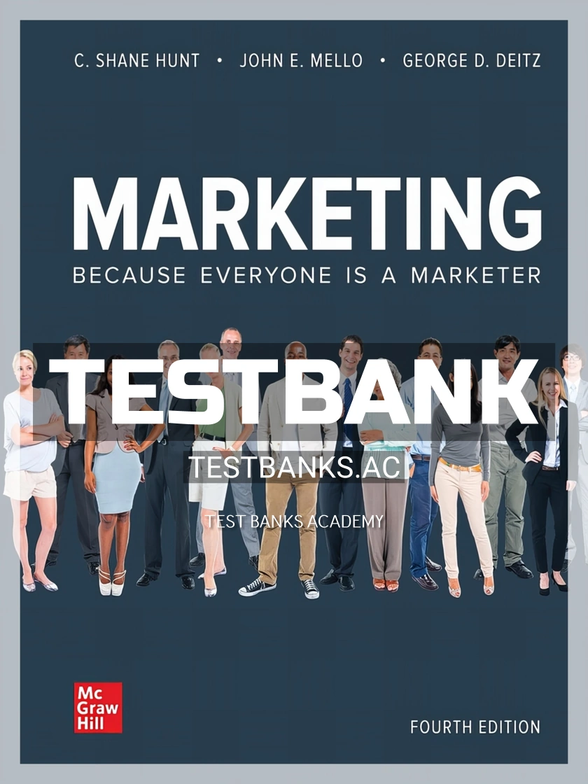 Complete test bank for marketing, 4th edition by hunt, mello, deitz (mcgraw-hill 2024 9781265271084-isbn) All chapters are included.