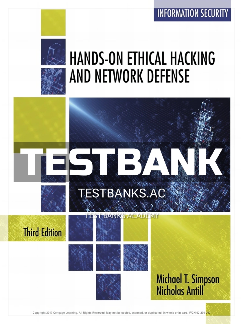 Complete test bank for hands-on ethical hacking and network defense, 3rd edition by simpson, antill (cengage 2017 9781285454610-isbn) All chapters are included.