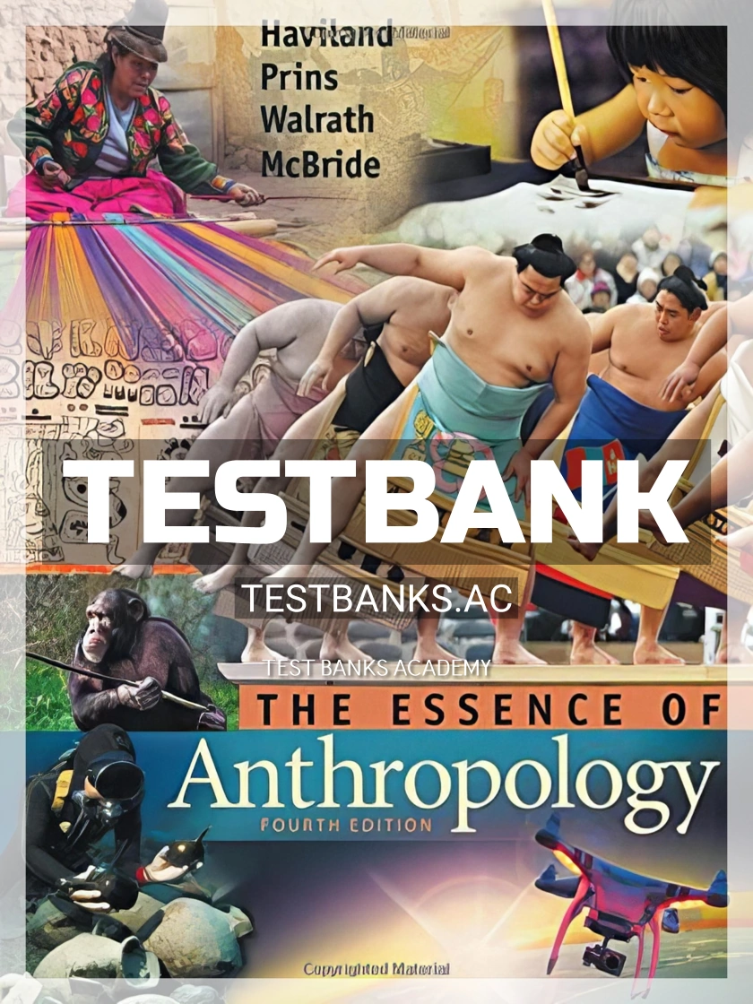 Complete test bank for the essence of anthropology, 4th edition by haviland, prins, walrath, mcbride (cengage 2016 9781305258983-isbn) All chapters are included.