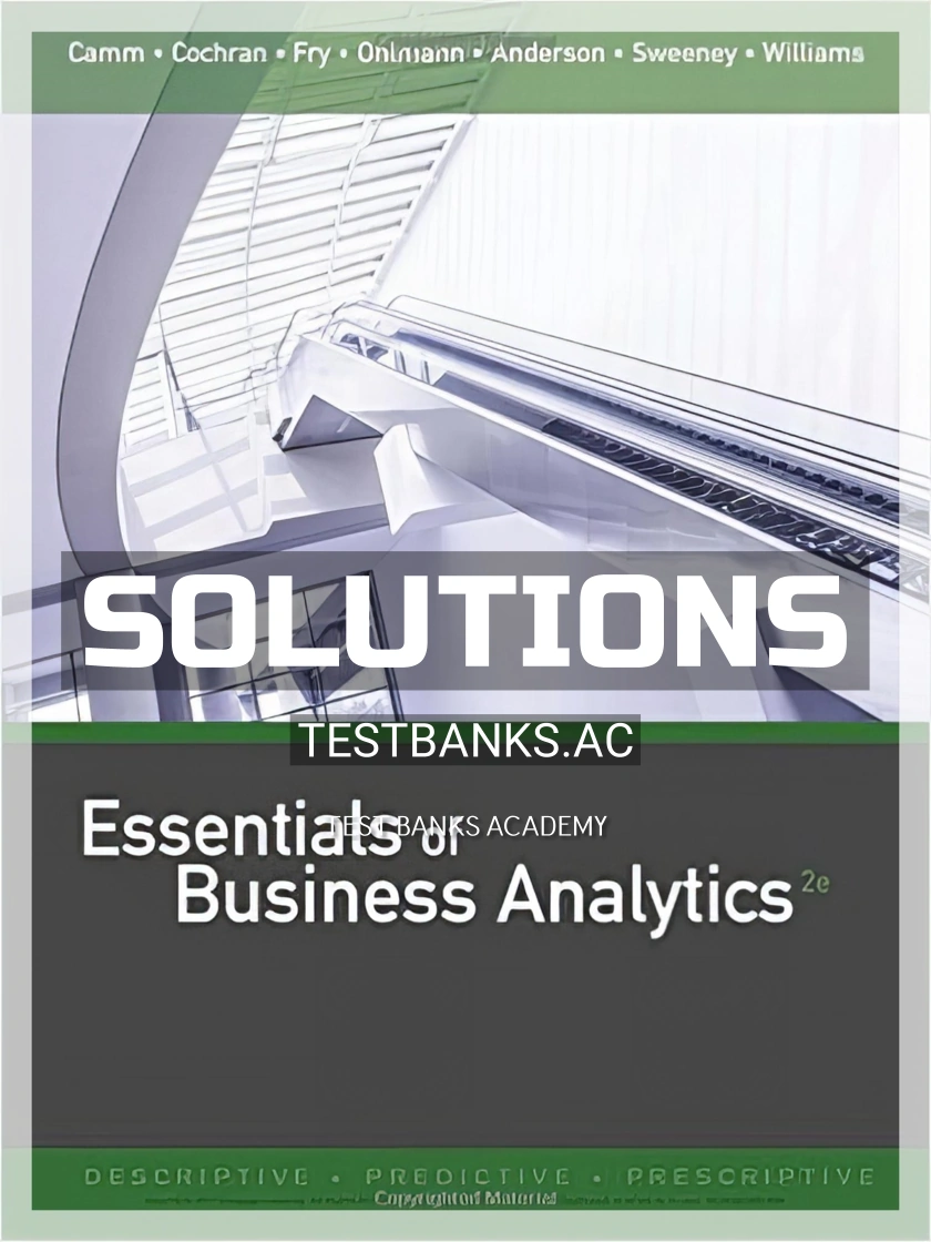 Complete solutions manual for essentials of business analytics, 2nd edition by camm, cochran, fry, ohlmann, anderson, sweeney, williams (cengage 2017 9781305627734-isbn) All chapters are included.