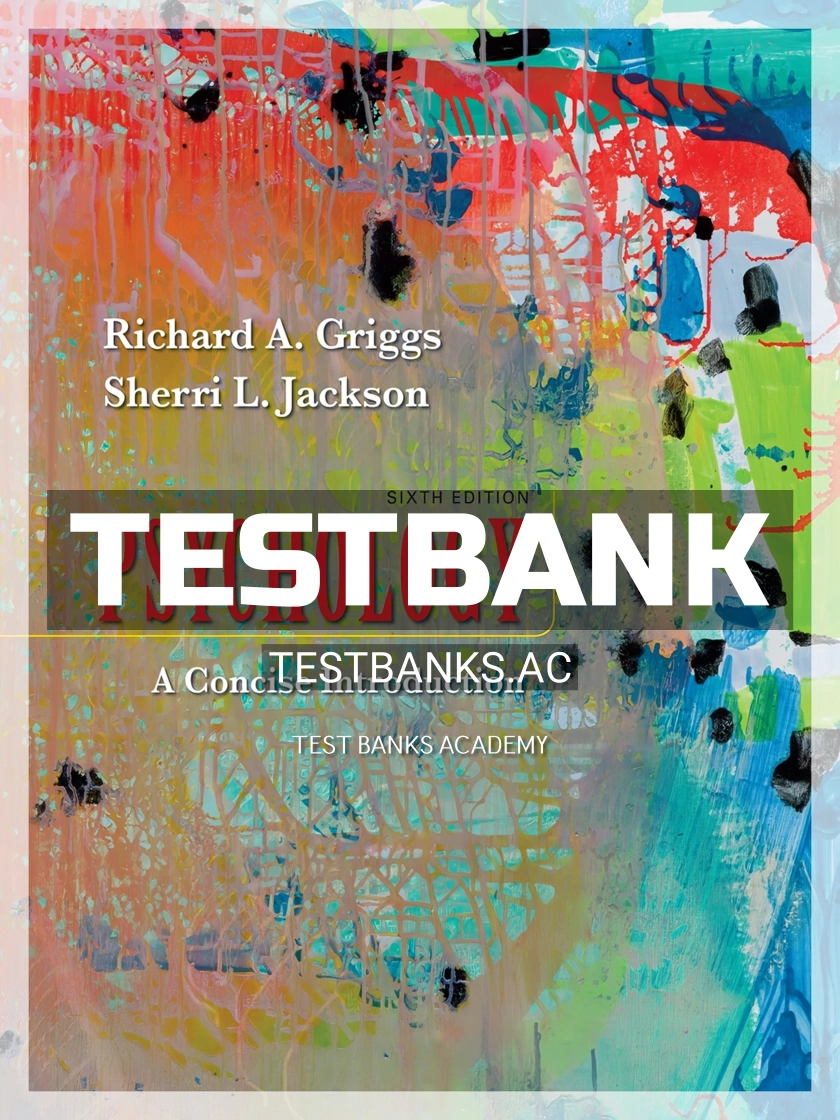 Complete test bank for psychology a concise introduction, 6th edition by griggs, jackson (macmillan 2020 9781319122621-isbn) All chapters are included.