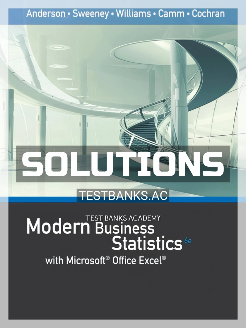 Complete solutions manual for modern business statistics with microsoft excel, 6th edition by anderson,sweeney,williams,camm,cochran (cengage 2018 9781337115186-isbn) All chapters are included.