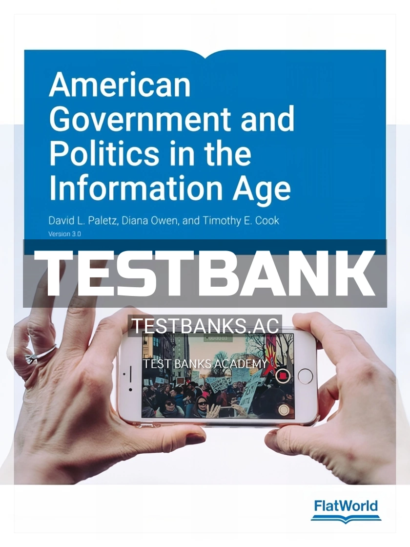 Complete test bank for american government and politics in the information age version 3 0, 3rd edition by paletz,owen,cook (flatworld 2017 9781453386545-isbn) All chapters are included.