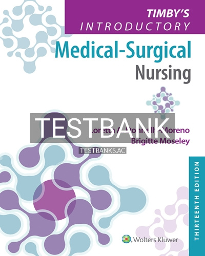 Complete test bank for timbys introductory medical surgical nursing 13th edition by donnelly moreno. (Wolters kluwer 2022 9781975172237-test-bank)
